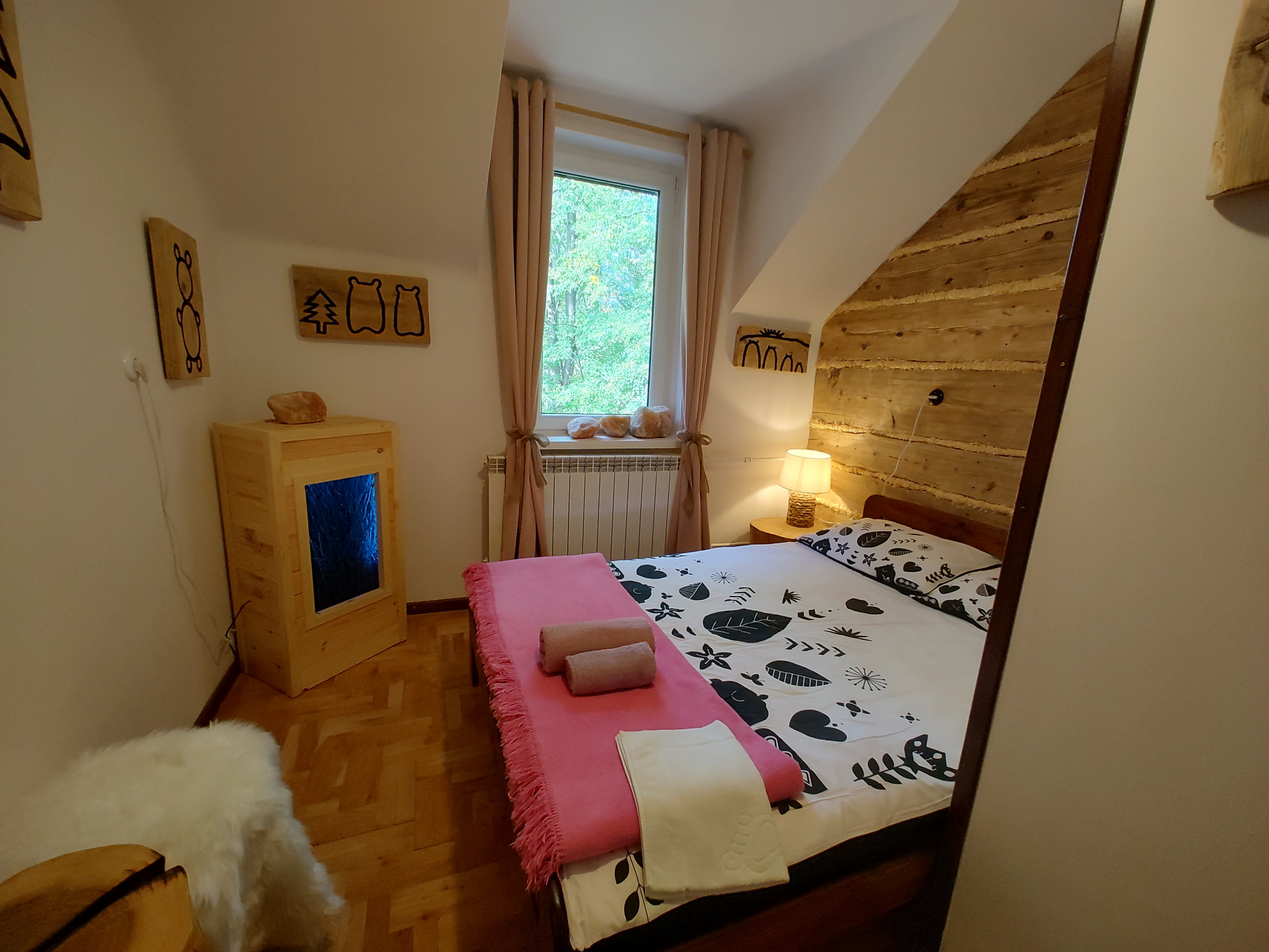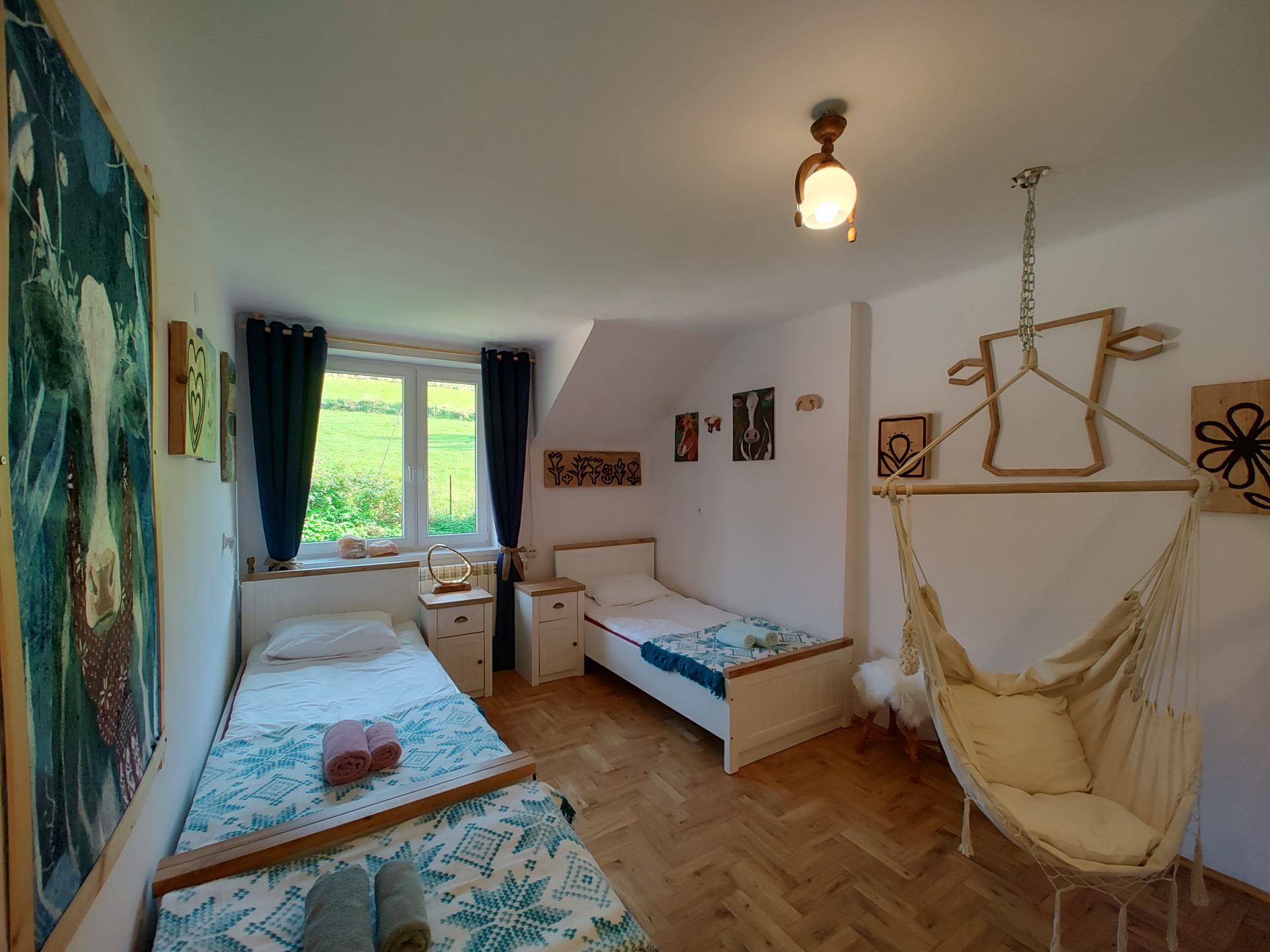 Każda izba w Miłłówce na inny motyw przewodni i inny wygląd dekoracji. Dużo elementów drewnianych. Dotyczy to też łazienek. Mnóstwo małych i większych dzieł sztuki, w każdej izbie. Dzieła są oryginalne, wykonane w większości przez Czułego Drwala specjalnie dla każdej przestrzeni w Miłłówce.